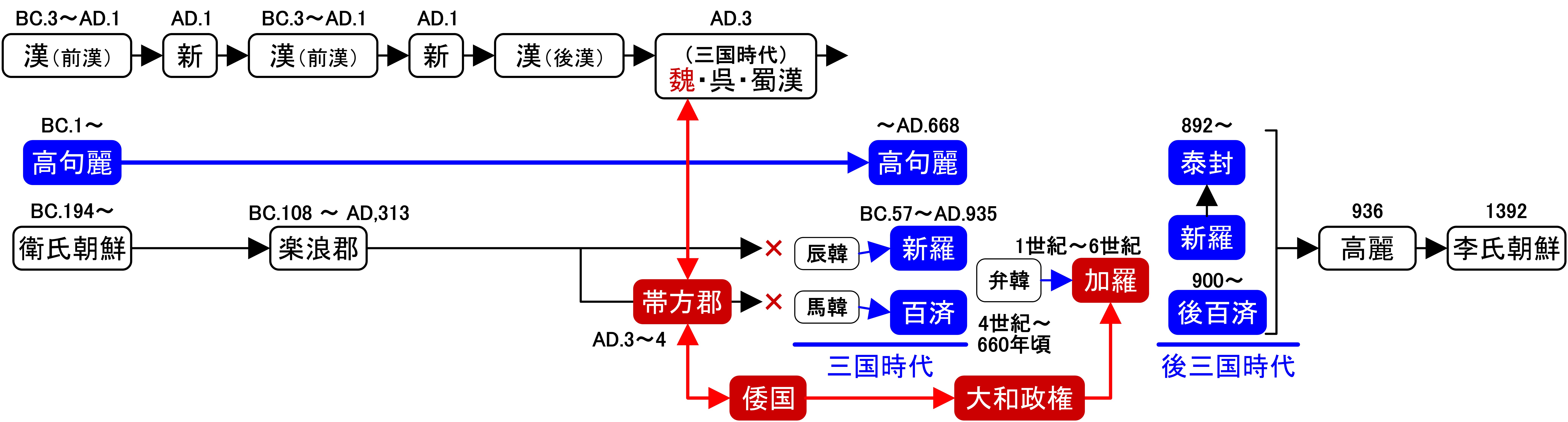 『原理講論』の591ページには、神の心情の対象となるための、血と汗と涙の道があったと記されている。衛氏朝鮮は武帝に滅ぼされ(紀元前108年)て楽浪郡として西暦313年まで朝鮮半島の郡として存在した。また、高麗時代は元が興るとまもなくその侵入をうけて属国となり(1270年)、1356年には元の支配から脱して独立することができた。その後、倭寇の侵入に対して功績をあげて台頭した武人李成桂によって1392年に朝鮮王朝(李氏朝鮮)を興すことができたのである。